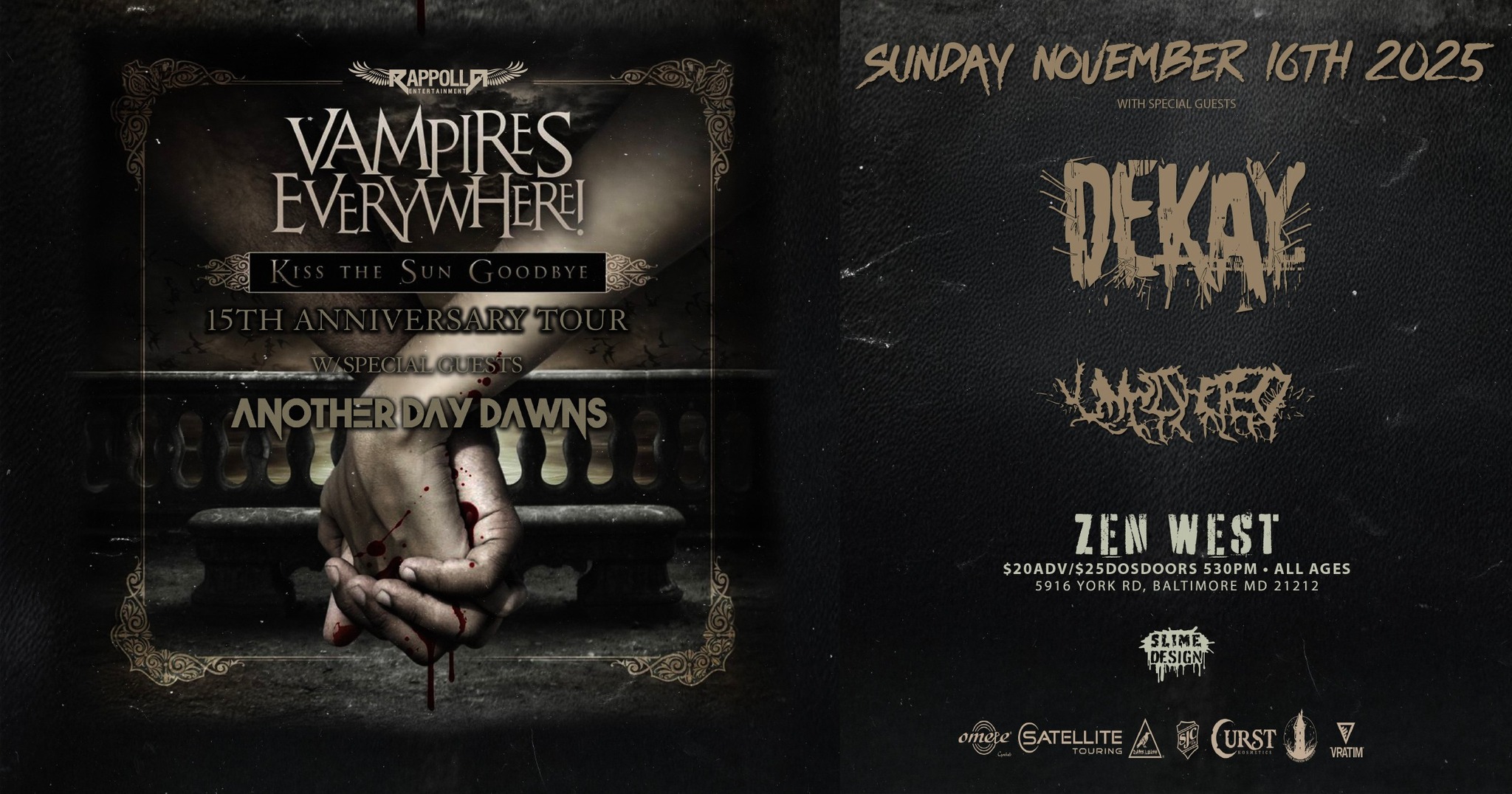 𝐕𝐚𝐦𝐩𝐢𝐫𝐞𝐬 𝐄𝐯𝐞𝐫𝐲𝐰𝐡𝐞𝐫𝐞! was founded in 2010 by Michael Orlando, later known as Michael Vampire, in Hollywood, CA. Inspired by the 1987 cult film The Lost Boys, Michael merged his love for horror with hard-hitting rock, quickly gaining attention with the debut video “Immortal Love,” which hit MTV’s Headbangers Ball and amassed over half a million views. Soon after, the band signed with Century Media Records and toured with Black Veil Brides, Motionless In White, Orgy, Falling In Reverse, Escape The Fate, and even opened for X Japan’s first U.S. tour. In 2012, VE! performed on the Vans Warped Tour and headlined “Rob Zombie’s Great Adventure.” After a 2021 rebirth, the band surged back with a new fan base and notable success from their 2023 single “Cry Little Sister,” charting on Billboard and Mediabase, and featured in Paramount+ UK’s The Burning Girls. Recent releases include covers of My Chemical Romance’s “Welcome to the Black Parade” and Teddy Swims’ “Lose Control.” Still touring and releasing music, Vampires Everywhere! is pushing toward their goal of cementing a place in rock history. https://beacons.ai/vampireseverywhere?